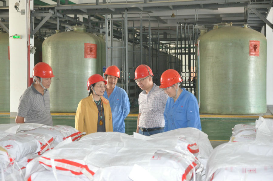 不一會(huì),車到了鎳鹽車間。走進(jìn)高大寬敞整潔的鎳鹽車間,一進(jìn)門,趙總就看到了堆放整齊的氯化鈷產(chǎn)品,走到產(chǎn)品邊,興奮地用手摸著氯化鈷產(chǎn)品,連聲稱贊:“產(chǎn)品好!包裝也好!”巡視車間設(shè)備運(yùn)行情況,趙總感到十分驚奇,諾大的車間,生產(chǎn)線設(shè)備運(yùn)行平穩(wěn),噪音小,無灰塵,管控人員少,監(jiān)控室多個(gè)屏幕,準(zhǔn)確的反映了設(shè)備運(yùn)行情況。車間主任張磊認(rèn)真的向趙總匯報(bào)了鎳鹽車間生產(chǎn)情況,并說鎳鹽車間目前還沒有完全投產(chǎn),部分生產(chǎn)設(shè)備正在安裝中,如果全部投產(chǎn),產(chǎn)量將翻一番。趙總聽了非常滿意,在車間與公司任總、吳總助、章主任、車間張主任合影。
