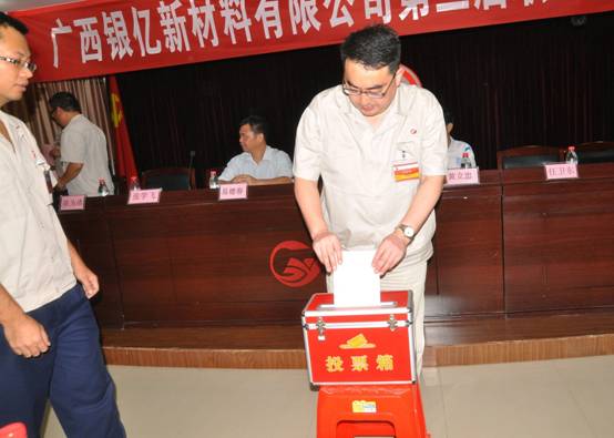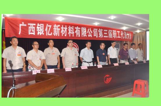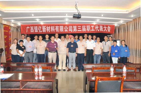 下午3:00整,章群宏同志宣布:廣西銀億新材料有限公司第三屆職工代表大會(huì)開(kāi)幕。全體起立,高唱國(guó)歌。