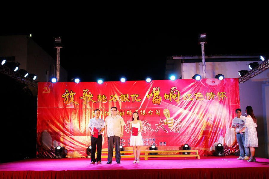 比賽競爭激烈,精品迭出,最后,浸出車間的《我的中國心》、鎳鹽車間張響的《中國人》、裝備部的合唱《團結就是力量》、品管部廖永萬的《少年壯志不言愁》、研發(fā)部李炳強的《萬里長城永不倒》獲得三等獎。品管部馮春蓮的《走進新時代》、銷售部黎波的《血染的風采》演唱感人至深,榮獲二等獎。采購部朱旭波的《紅旗飄飄》將現(xiàn)場氣氛點燃至高潮,最終抱得冠軍!