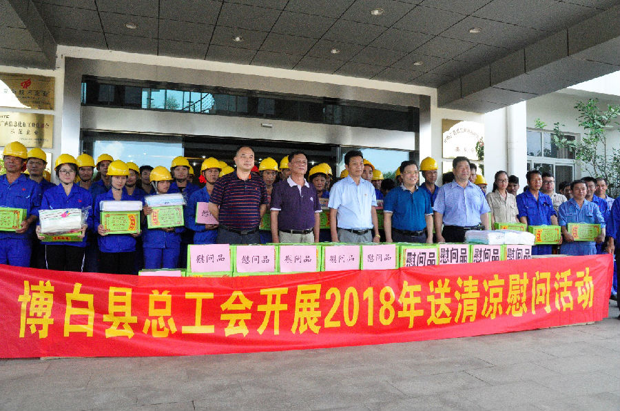 為進一步關心基層員工的身心健康,傳遞縣工會對員工的關愛,營造良好和諧的工作氛圍。8月20日,博白縣工會主席周鵬昌、工會黨組書記高舉紅、龍?zhí)懂a(chǎn)業(yè)園工會主席張小輝等領導聯(lián)合對我司開展慰問“送清涼”活動,為我司奮斗在一線的員工帶來150箱清涼飲料和300條毛巾。銀億公司工會主席章群宏接待了工會領導,并表示此次縣總工會送清涼慰問活動不僅給一線干部員工送去了清涼,而且極大鼓舞了員工士氣,讓公司干部員工感受到了各級工會的關懷,激發(fā)了全司員工的工作熱情。