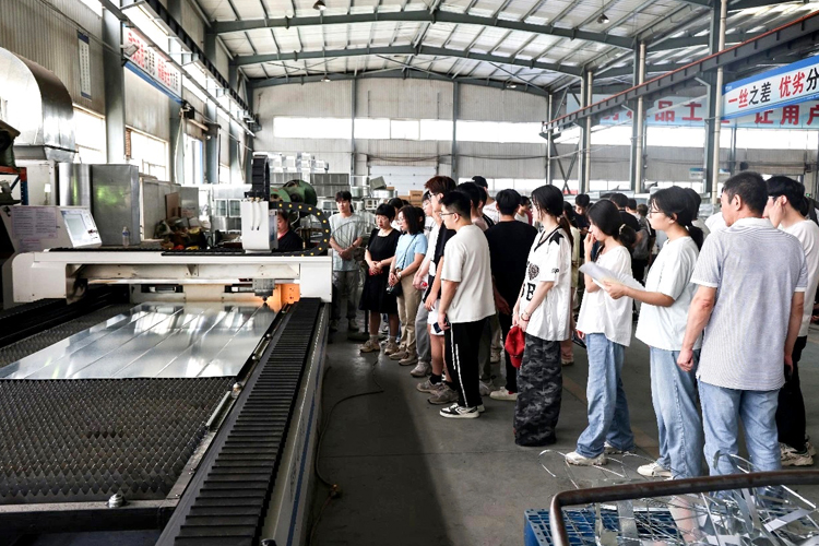 參觀完展館后,師生們前往生產(chǎn)車間觀摩實(shí)習(xí),同學(xué)們近距離觀摩了空調(diào)零部件加工、零部件組裝與智能化生產(chǎn)線,學(xué)習(xí)了鈑金加工、注塑成型、焊接組裝等工藝流程,深入車間掌握了風(fēng)管、水箱、風(fēng)閥、風(fēng)機(jī)、冷卻塔等產(chǎn)品的生產(chǎn)過(guò)程。g1L河北空調(diào)工程安裝有限公司