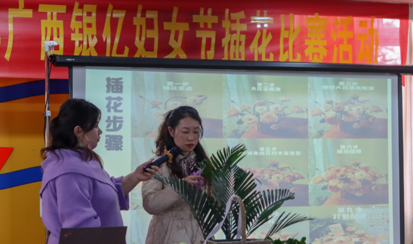 活動在鮮花芬芳中拉開帷幕,公司總工程師、工會主席和潤秀參加了活動并致辭,向全體女職工致以真摯的問候和美好的祝福,希望廣大女職工在搶抓機(jī)遇中擔(dān)當(dāng)作為、拼搏、奉獻(xiàn),充分展現(xiàn)女性作用,為推動廣西銀億高質(zhì)量發(fā)展作出新的貢獻(xiàn)。此次活動吸引了廣大女職工積極參與,公司共有18個隊伍共計90名女職工參與了此次花藝大比拼。