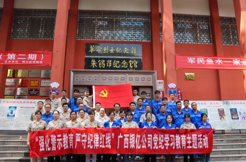 為進一步強化黨員廉潔教育,持續(xù)提升黨性修養(yǎng)、紀律意識和廉潔意識,7月10日,廣西銀億公司黨委組織黨員干部職工到博白縣朱錫昂紀念館進行參觀學習。活動由公司黨委委員、第二黨支部書記和潤秀同志率隊,各黨支部黨員代表39人參加。