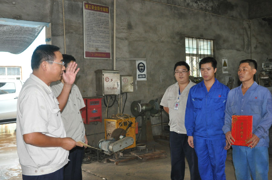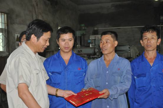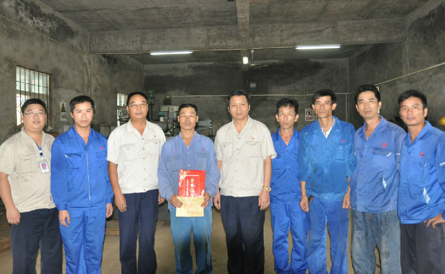 為祝賀廣西銀億公司裝備能源部王立泉獲得博白縣第二屆農民工技能大賽一等獎,公司黨委、工會非常重視,從組織報名到參賽全程跟蹤,由第四支部委員陳劍鋒帶隊參賽。為了鼓勵獲獎員工,黨委決定到車間對王立泉及獲獎選手進行嘉獎。公司黨委委員陳為清、章群宏為王立泉和獲獎選手頒發(fā)了獎金和證書。