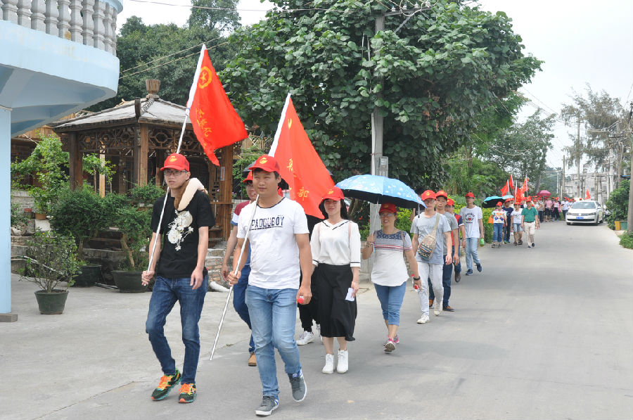 工會主席章群宏親自帶隊并任總教練,團委書記朱旭波負(fù)責(zé)此次活動的策劃與活動的組織。抵達目的地時,已臨近中午時分,此時的太陽明媚燦爛,耀眼灼灼。章主席安排大家分好團隊,領(lǐng)取食材,組織燒烤活動。在燒烤活動期間,每組團隊成員各展燒烤技能,有的錯落有序地排列好木炭,底下塞入少許廢舊報紙,點燃廢舊報紙,即可慢慢燃起木炭,呈現(xiàn)出亮紅的炭火;有的架上燒烤爐,整齊地排列好牛肉串、雞翅串、韭菜串、甜玉米棒、魷魚串等,大顯廚師之風(fēng),不一會兒便烤出了一串串香味撲鼻,色澤誘人的燒烤串,再配上點孜然粉、芝麻粒,便可上桌一道燒烤美味。有些成員則便可品嘗到等待已久的可滿足舌尖上味蕾的烤肉串!歷時2個多小時的燒烤午餐事畢,總教練章群宏主席立即召集所有人員,整理隊伍,并帶領(lǐng)著五個團隊,每隊各自舉著黨旗和團旗,向冠頭嶺森林公園海灘進發(fā)。
