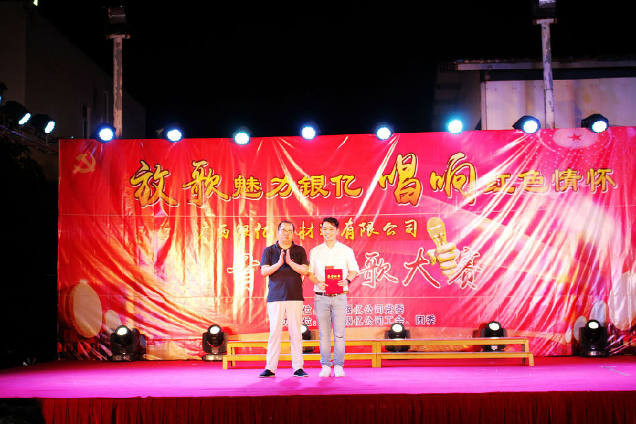 比賽競爭激烈,精品迭出,最后,浸出車間的《我的中國心》、鎳鹽車間張響的《中國人》、裝備部的合唱《團結就是力量》、品管部廖永萬的《少年壯志不言愁》、研發(fā)部李炳強的《萬里長城永不倒》獲得三等獎。品管部馮春蓮的《走進新時代》、銷售部黎波的《血染的風采》演唱感人至深,榮獲二等獎。采購部朱旭波的《紅旗飄飄》將現(xiàn)場氣氛點燃至高潮,最終抱得冠軍!
