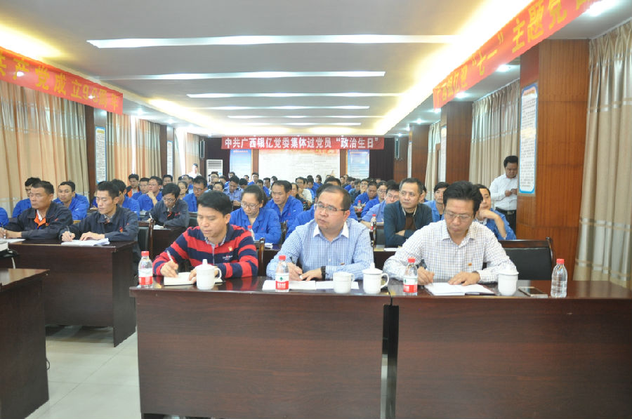 大會(huì)開(kāi)始前,黃政強(qiáng)同志贊揚(yáng)了廣西銀億全體黨員提前十分鐘有序入場(chǎng)就坐的表現(xiàn),對(duì)廣西銀億黨員同志的覺(jué)悟給予肯定。王小豐副書(shū)記號(hào)召全體黨員認(rèn)真學(xué)習(xí)、宣傳、貫徹“黨的十九大精神”,學(xué)做結(jié)合,用十九大精神推動(dòng)廣西銀億健康發(fā)展。