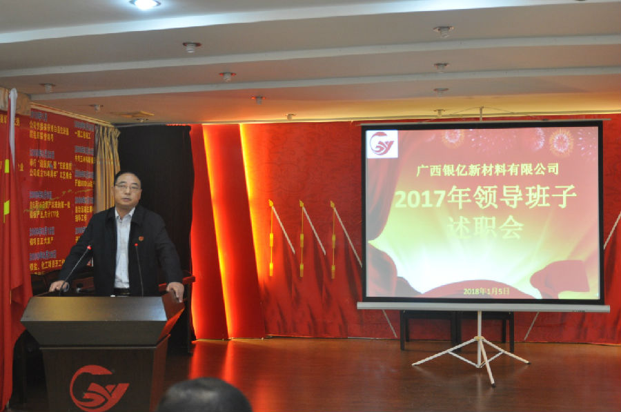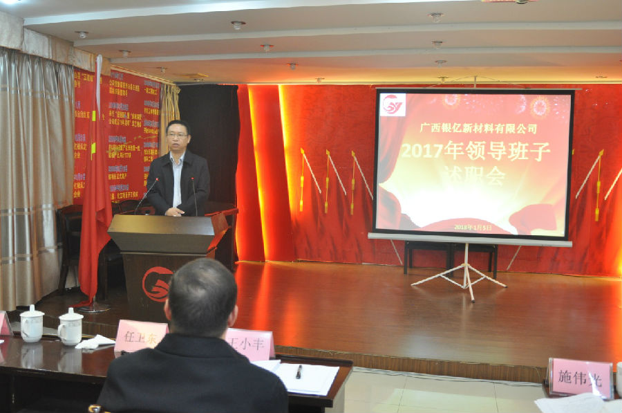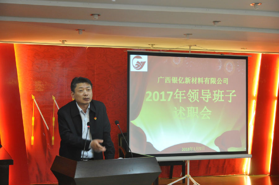 廣西銀億于1月5日上午8時30分在辦公樓三樓黨員活動室隆重舉行2017年度領(lǐng)導(dǎo)班子述職報告會,述職會由黨委委員章群宏主持,參加高層述職評議人員是全體中層以上干部47人,集團公司副總裁施偉光也蒞臨現(xiàn)場參與評議,并作了精彩點評。